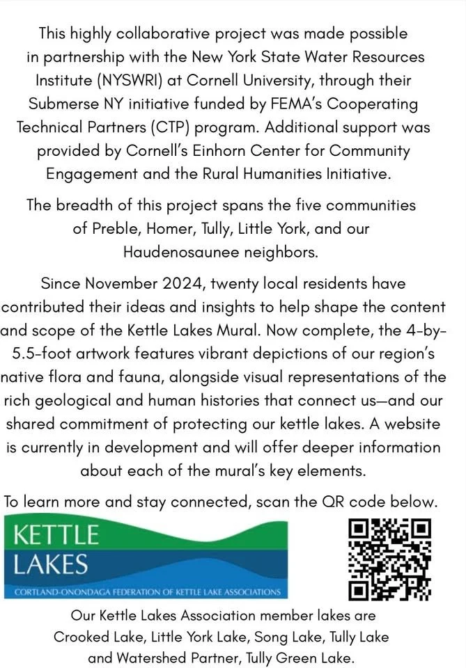 Please view the Storymap entitled-Stories of Water and Resilience: The Kettle Lakes Mural Reflections on Ecological Change and Stewardship Through Community-Engaged Public Art, created by New York State Water Resources Institute (NYSWRI), Cornell University